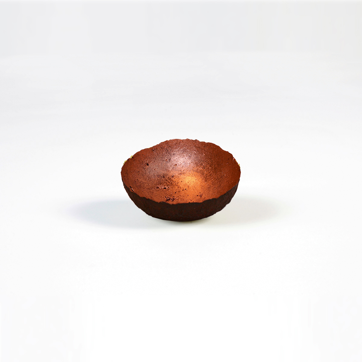 Die Oberfläche der Schale wurde mit einem edlen Kupferlack veredelt, der ihr einen warmen, glänzenden Schimmer verleiht.