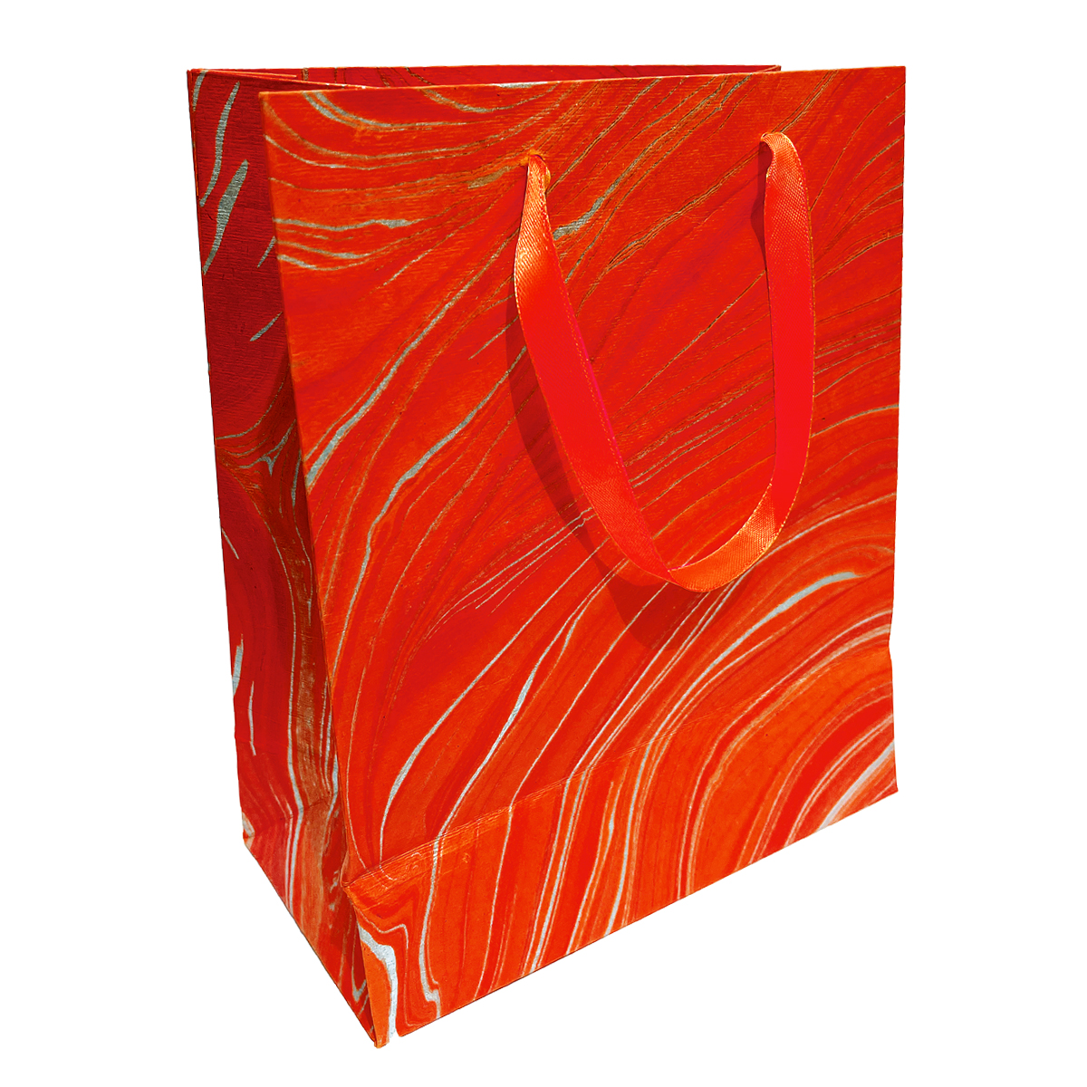 Geschenktasche, medium Marmoriert aus handgeschöpftem Papier in Rot/Gold.