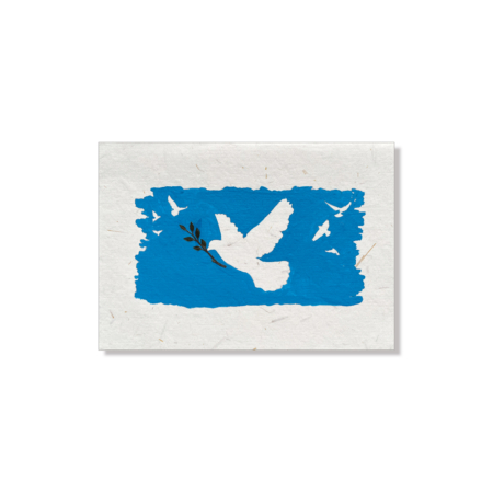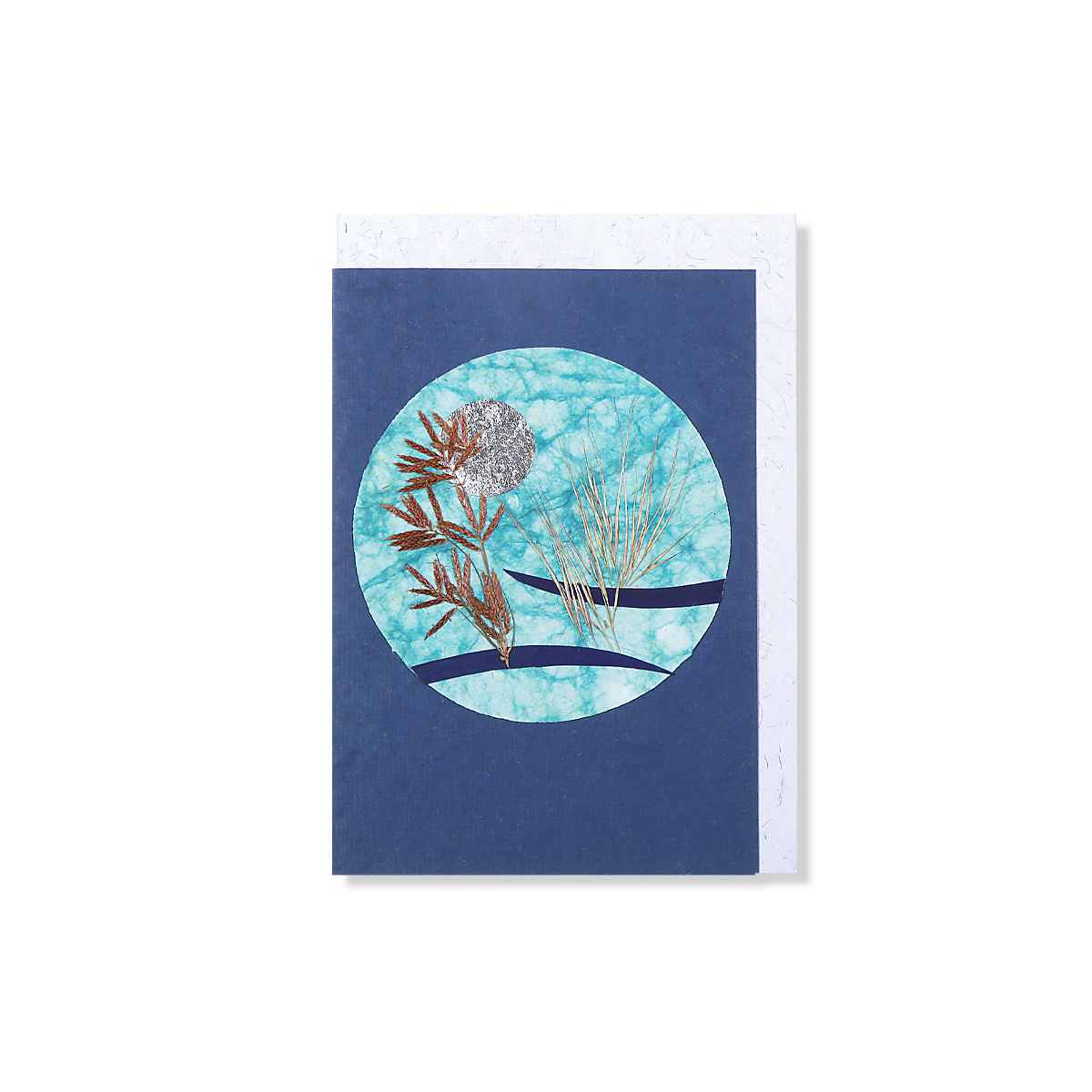 Farbige Klappkarte mit Landschaftsmotiv und Umschlag aus handgeschöpftem Papier.