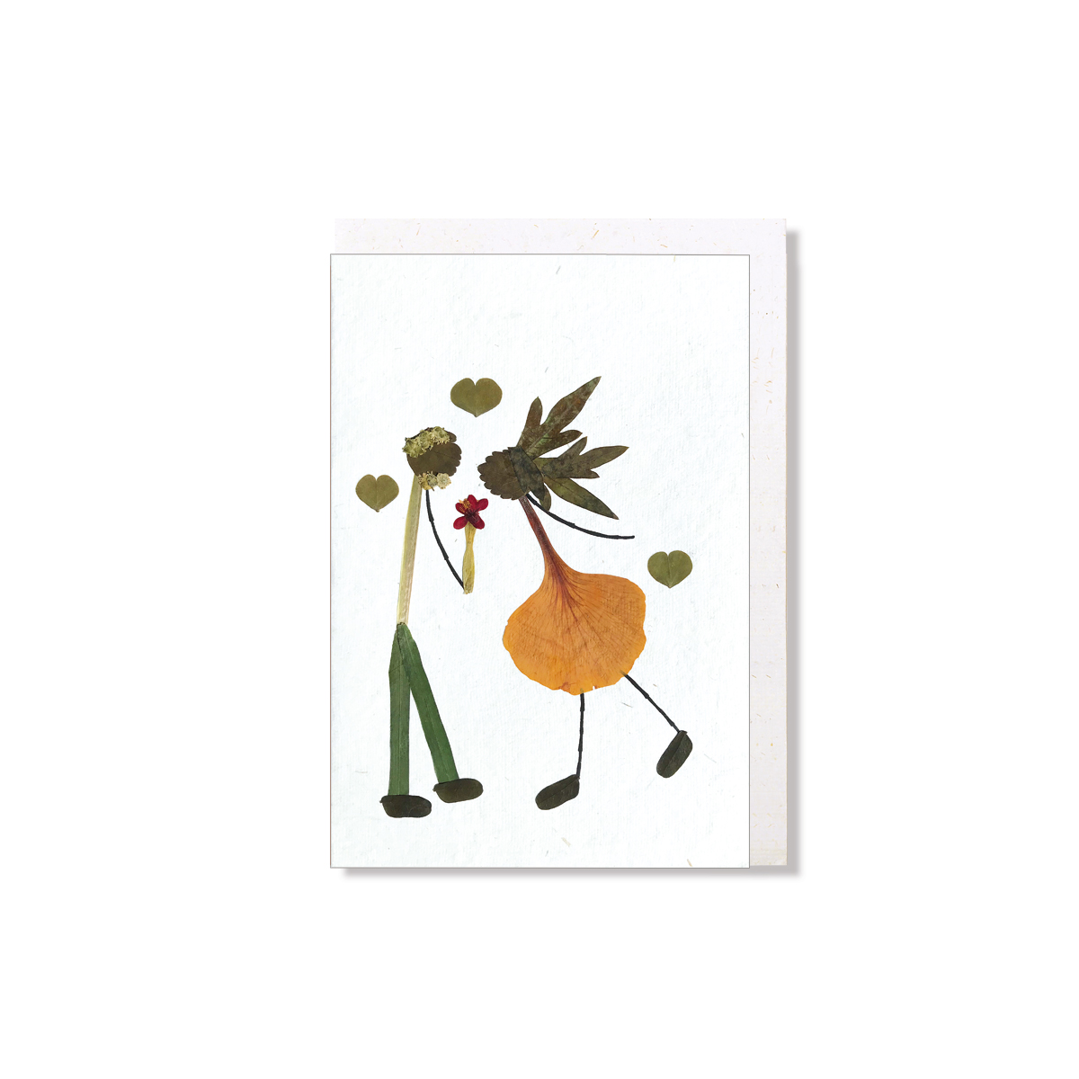 Das verliebte Paar ist ganz aus echten Blättern und Blüten gemacht.