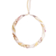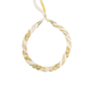 Diese Halsketten werden in Indien von Hand gefertigt. Das seidig glänzende Material ist im ECO PRINT Verfahren bedruckt. Dabei werden Blätter auf den vorgefärbten Stoff gelegt und geben ihre Farbe an das Material ab.