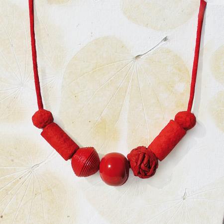 Material: Anhänger aus stabilem handgeschöpftem Papier, Keramikperle, Seidenband Länge ca. 90 cm, längenverstellbar, Seidenband