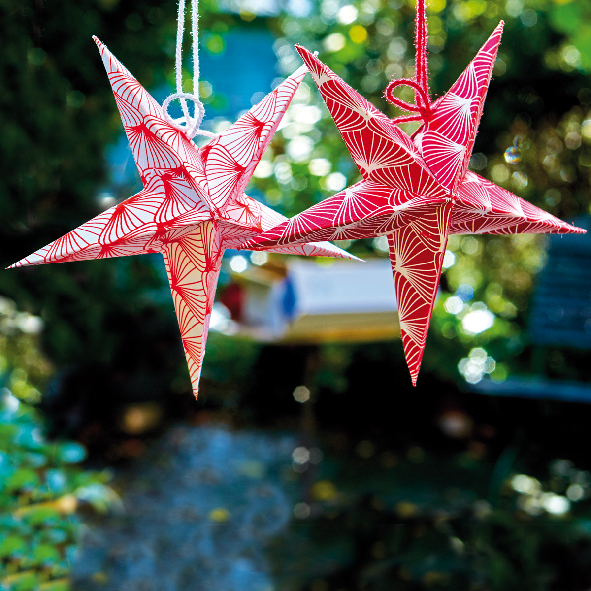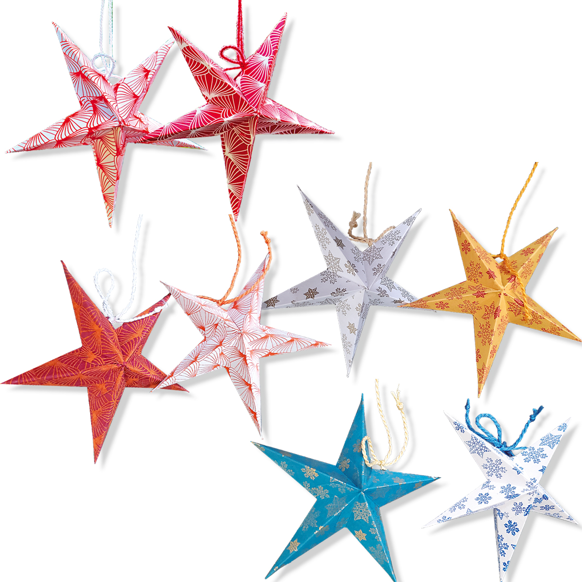 Das Mini-Faltstern 2er-Set enthält 2 unterschiedliche auffaltbare Mini-Faltsterne aus stabilem handgeschöpftem Papier.