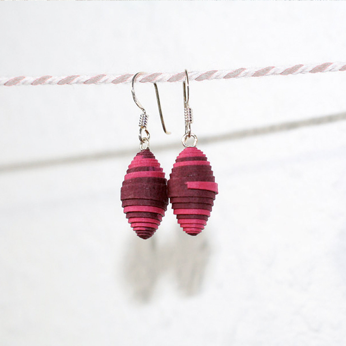 Die Ohrringe werden in liebevoller Handarbeit aus festem handgeschöpftem Papier hergestellt.