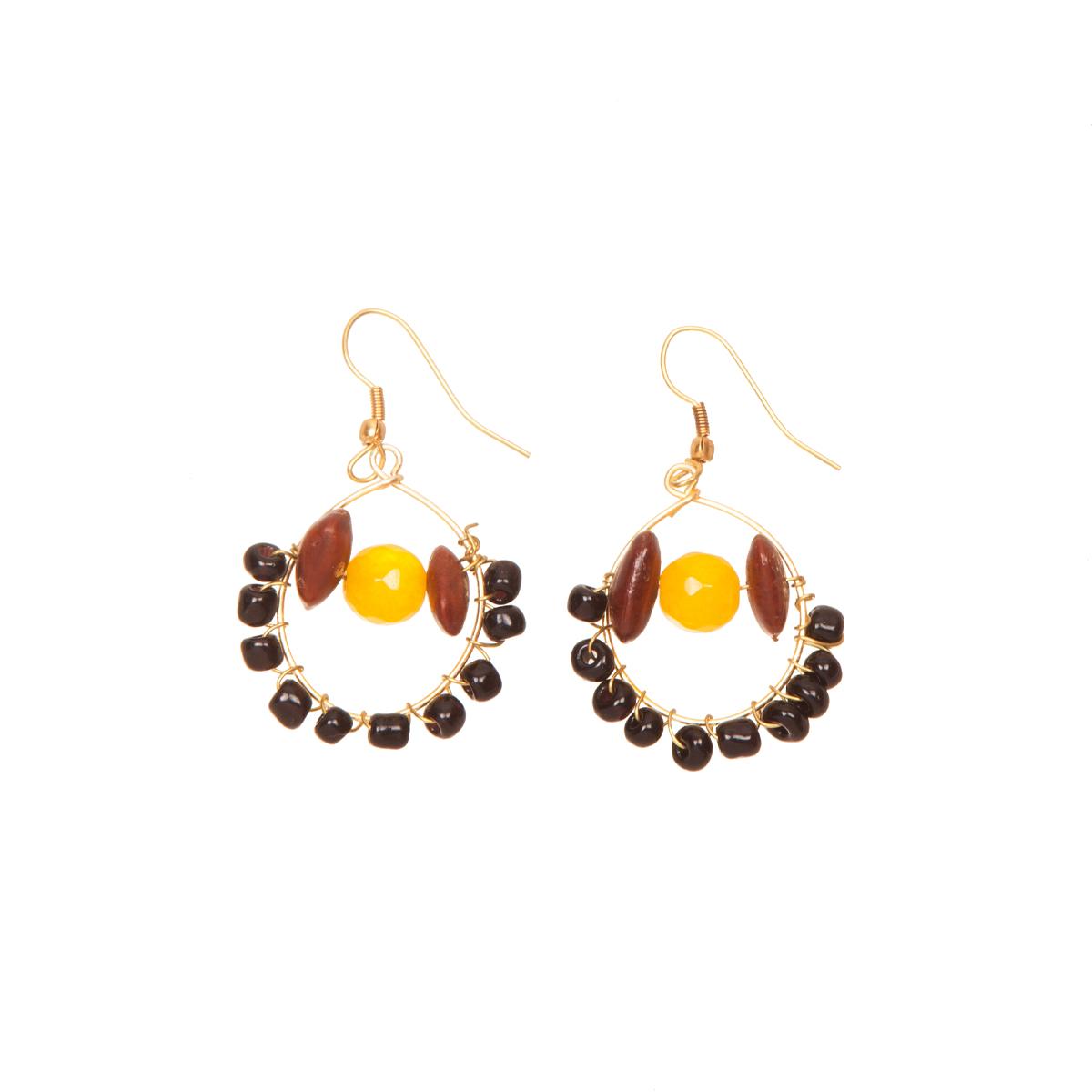 Ohrringe Vimal aus Natursamen, sonnengelben Achaten und Messing