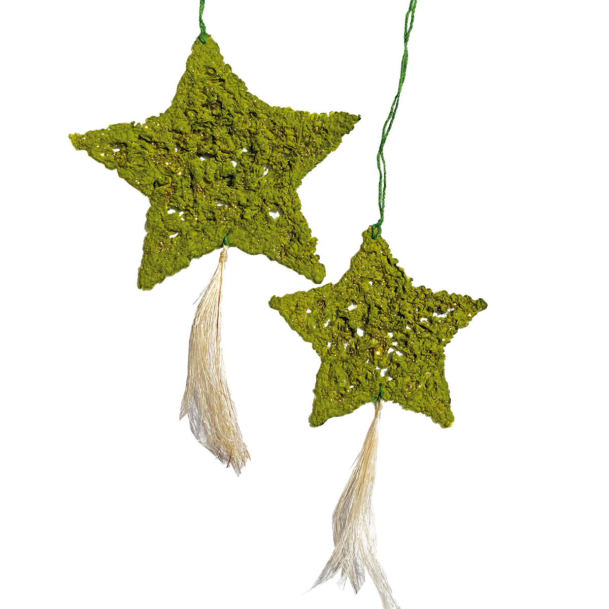 Set bestehend aus 2 unterschiedlich großen Stern-Anhängern mit Schweif in der Farbe Grün/Goldglitter.